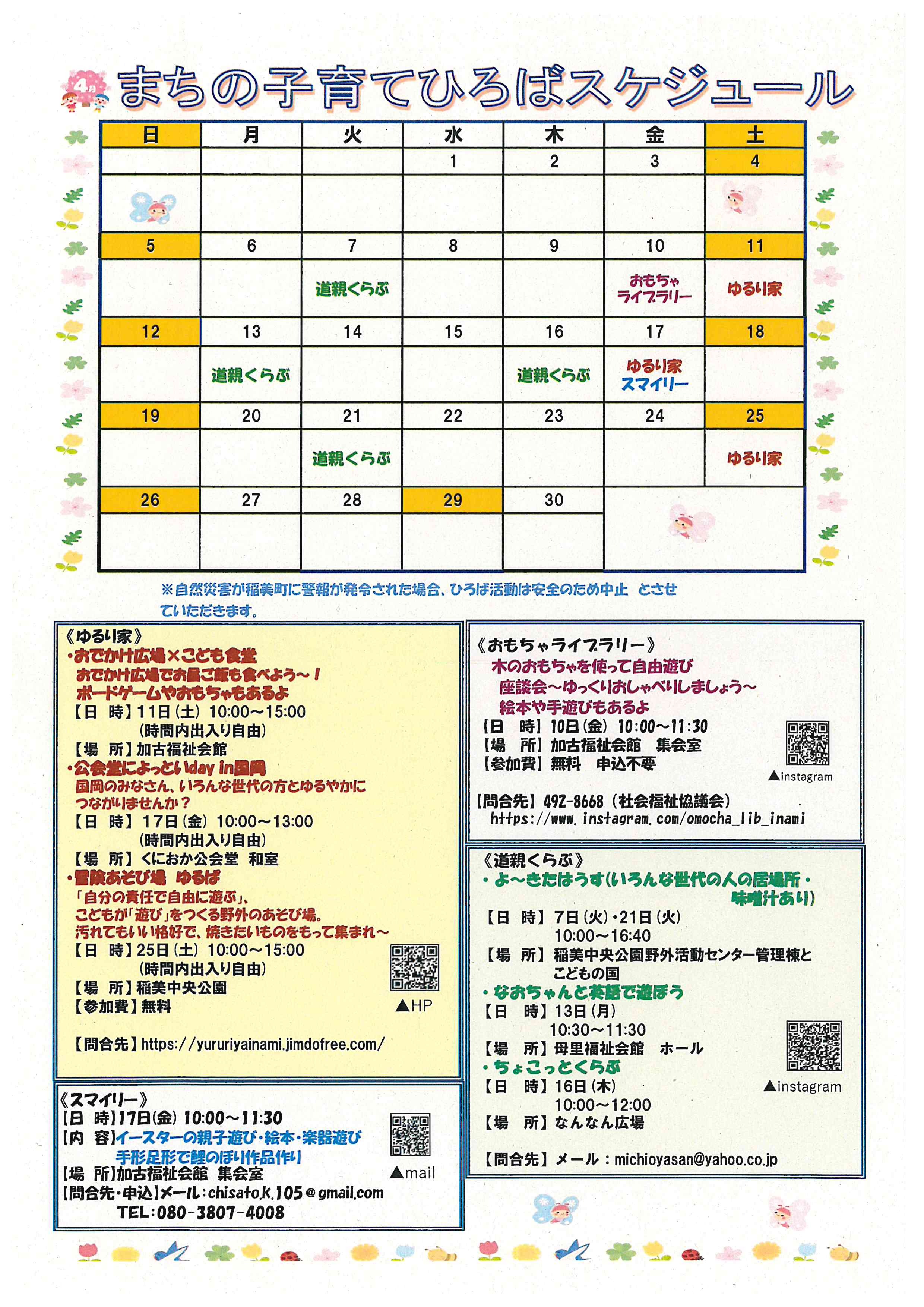 まちの子育てひろばの4月スケジュール