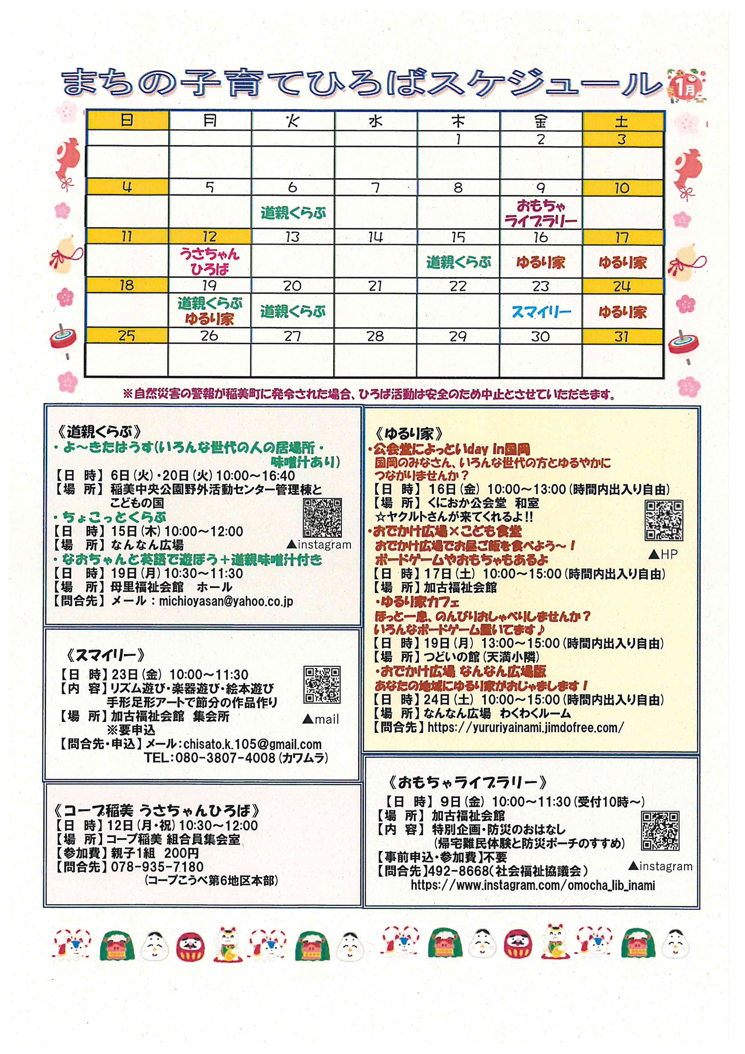 まちの子育てひろばの1月スケジュール