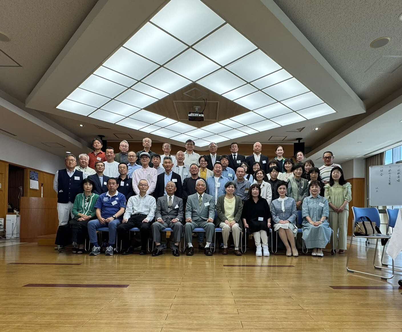 天満中学校昭和39年卒業の17回生46名がコミセンに集い同窓会を開催しました。多くの人が元気なお顔を見せてくださり、久しぶりに会う懐かしい面々が60年前の多感な少年少女に戻って楽しく歓談することができました。次回は80歳までに開催しようということで、みんな健康寿命を保ち再会を約して解散しました。