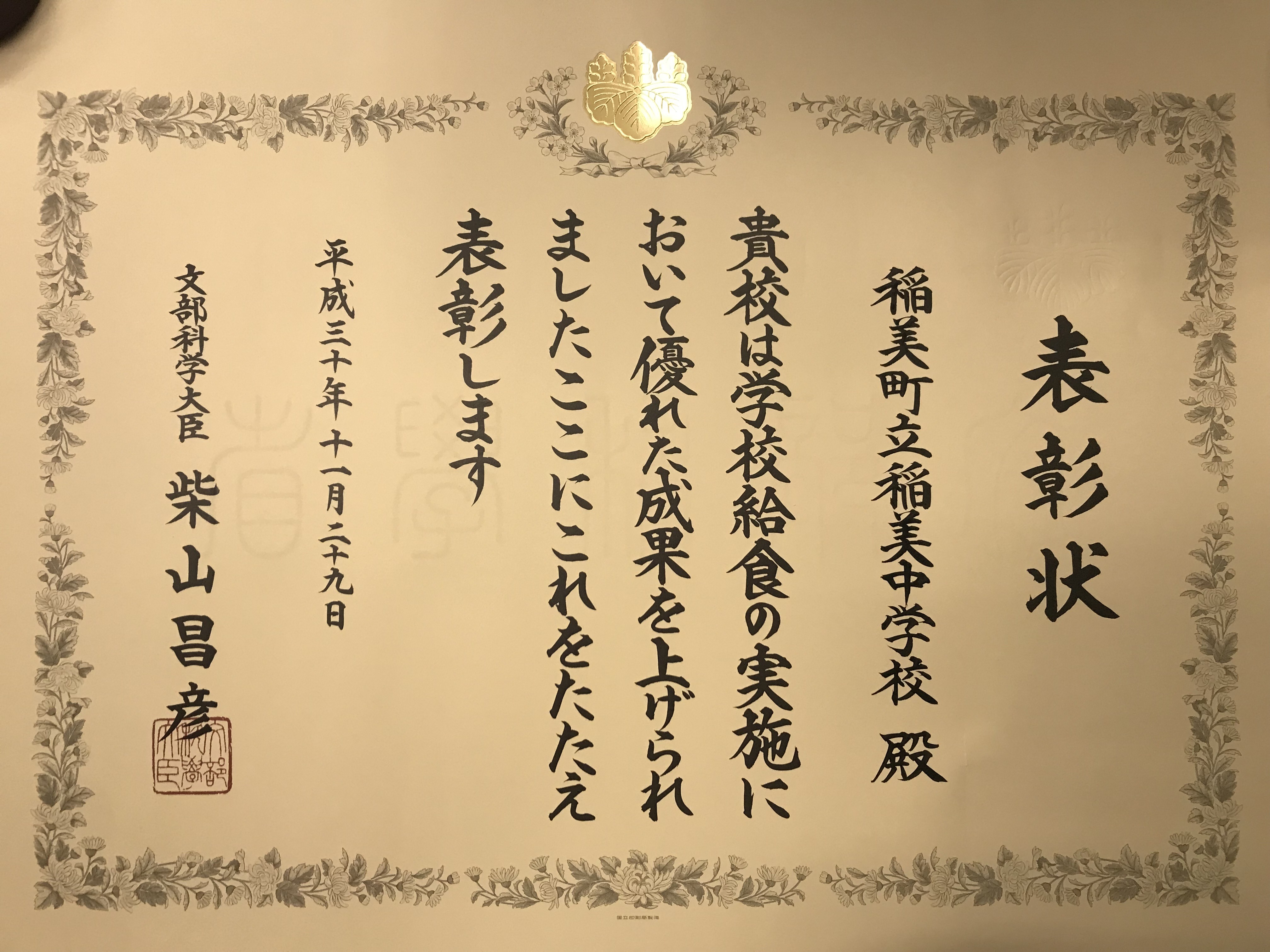 平成30(2018)年度文部科学大臣表彰「学校給食表彰」の受賞について