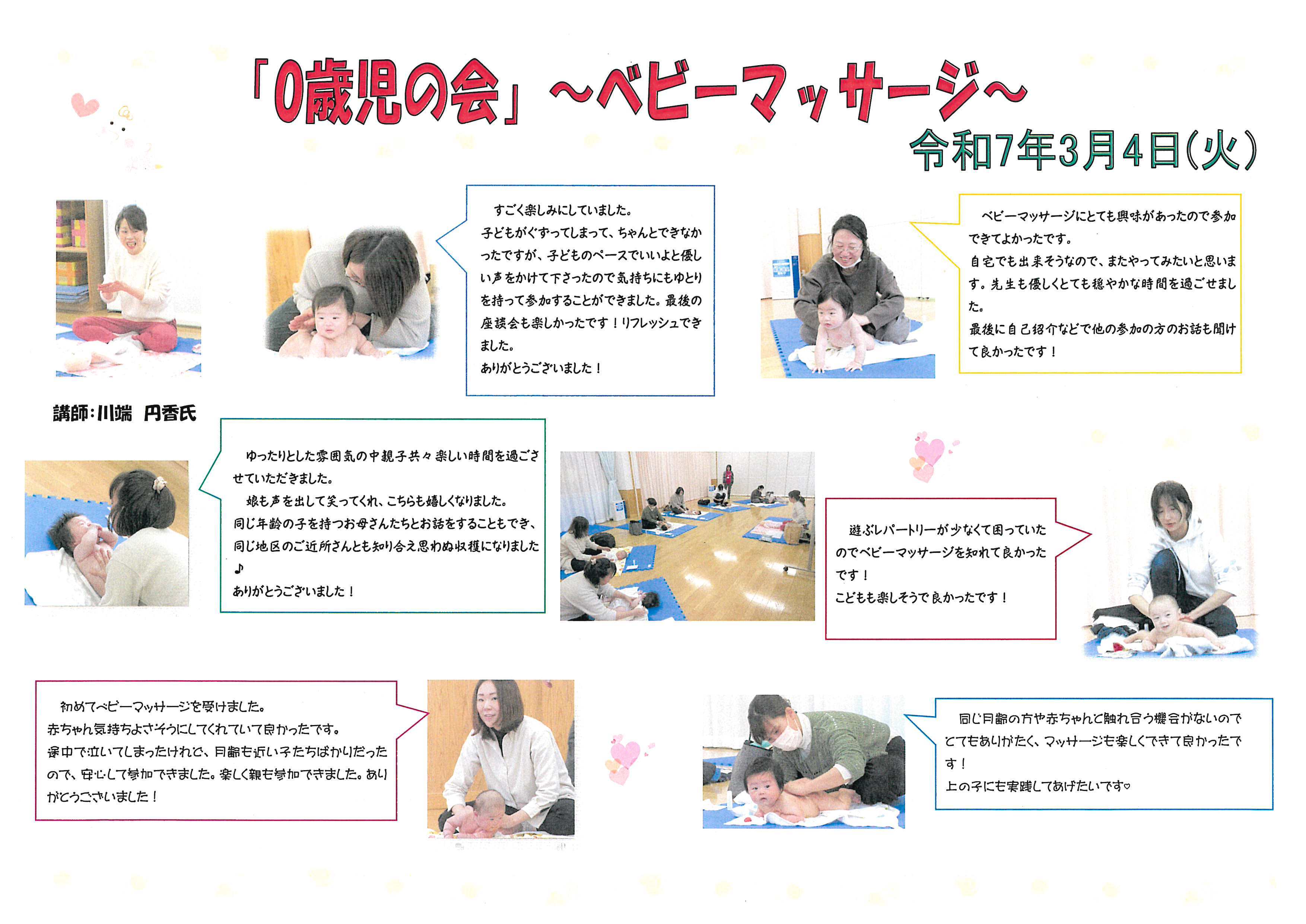 ▲ 令和7(2025)年3月4日 0歳児の会「ベビーマッサージ」