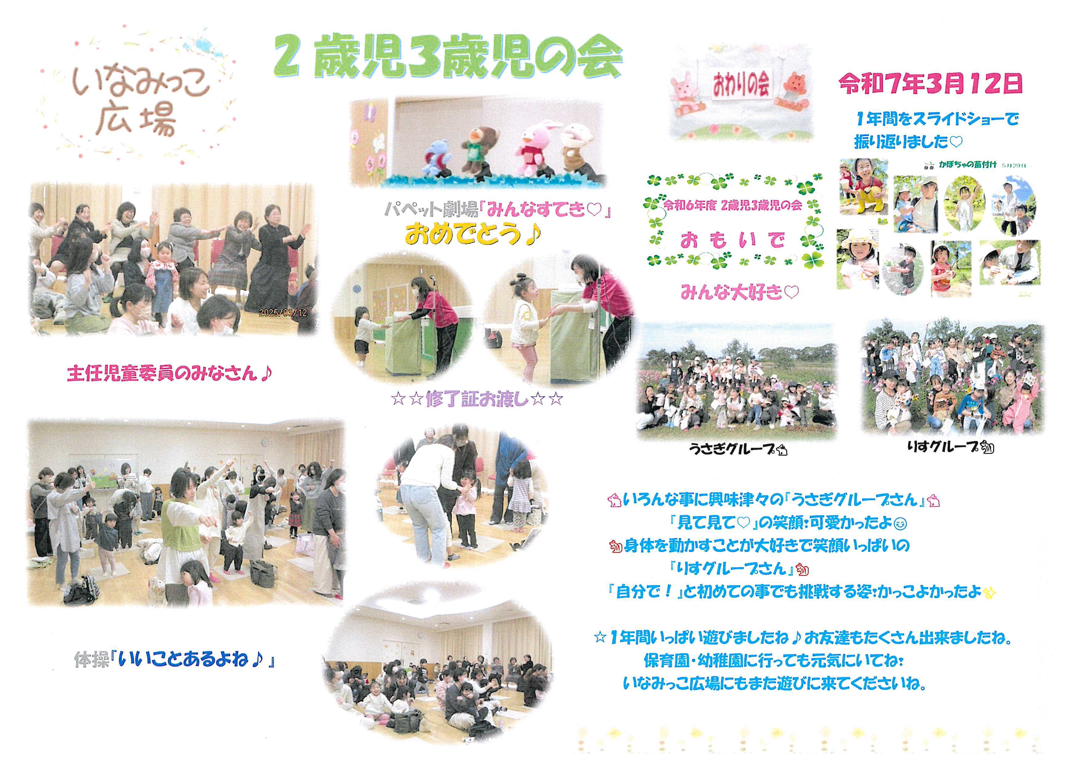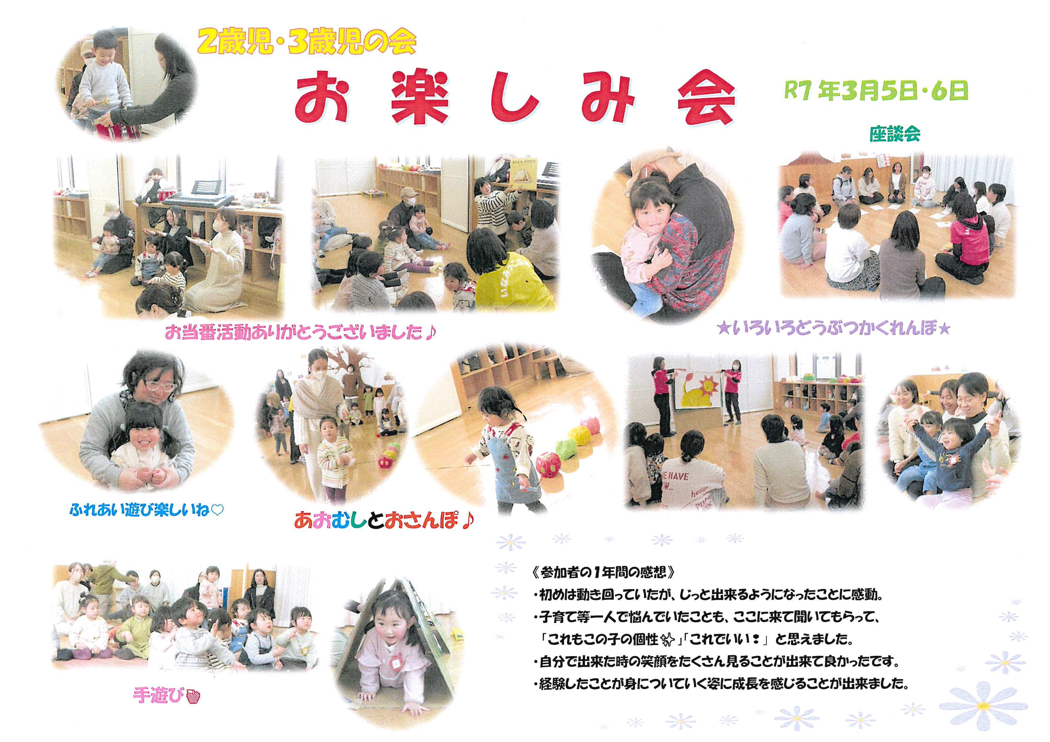 ▲ 令和7(2025)年3月5日6日 2歳児3歳児の会「お楽しみ会」