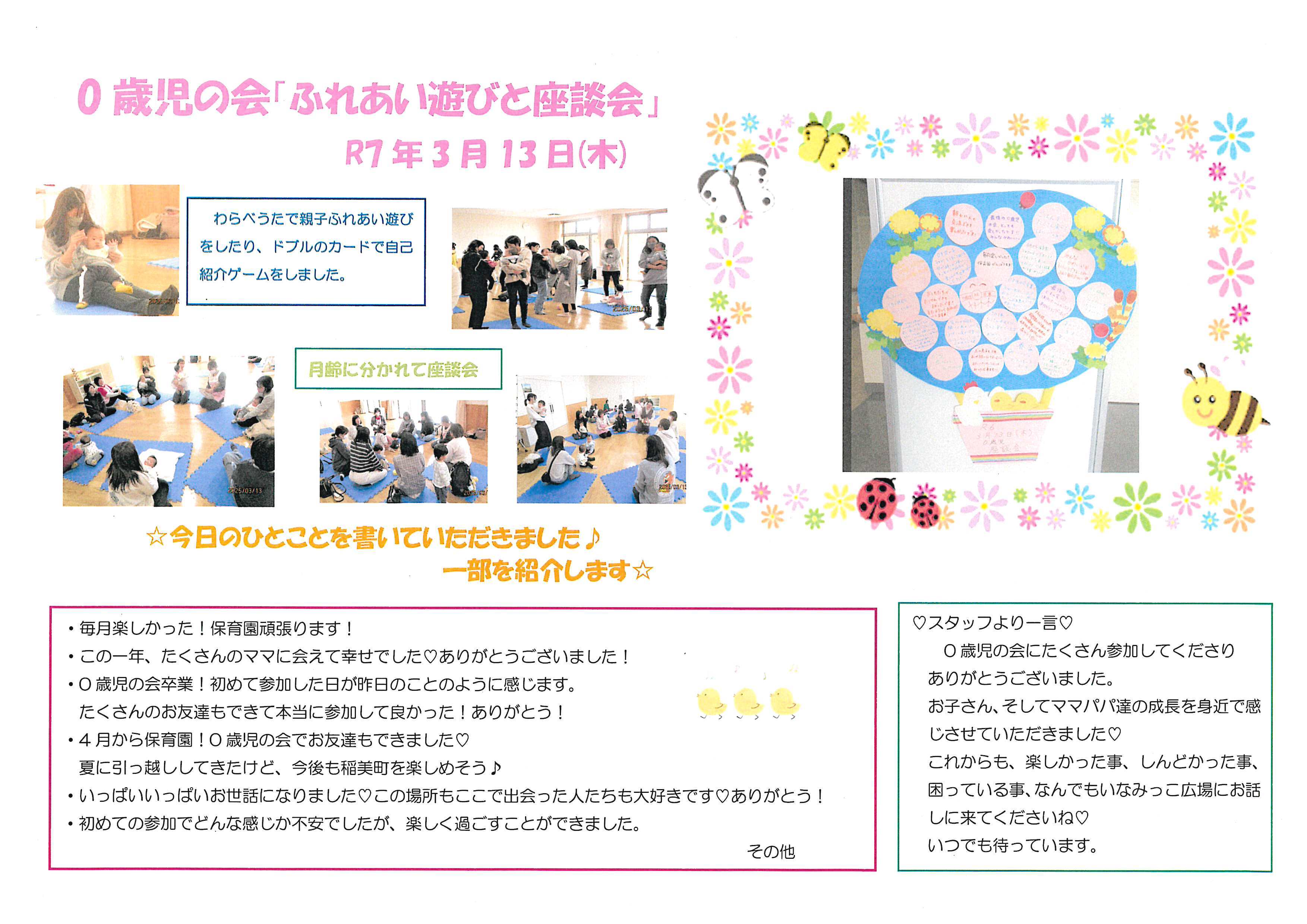 ▲ 令和7(2025)年3月13日 0歳児の会「ふれあい遊びと座談会」