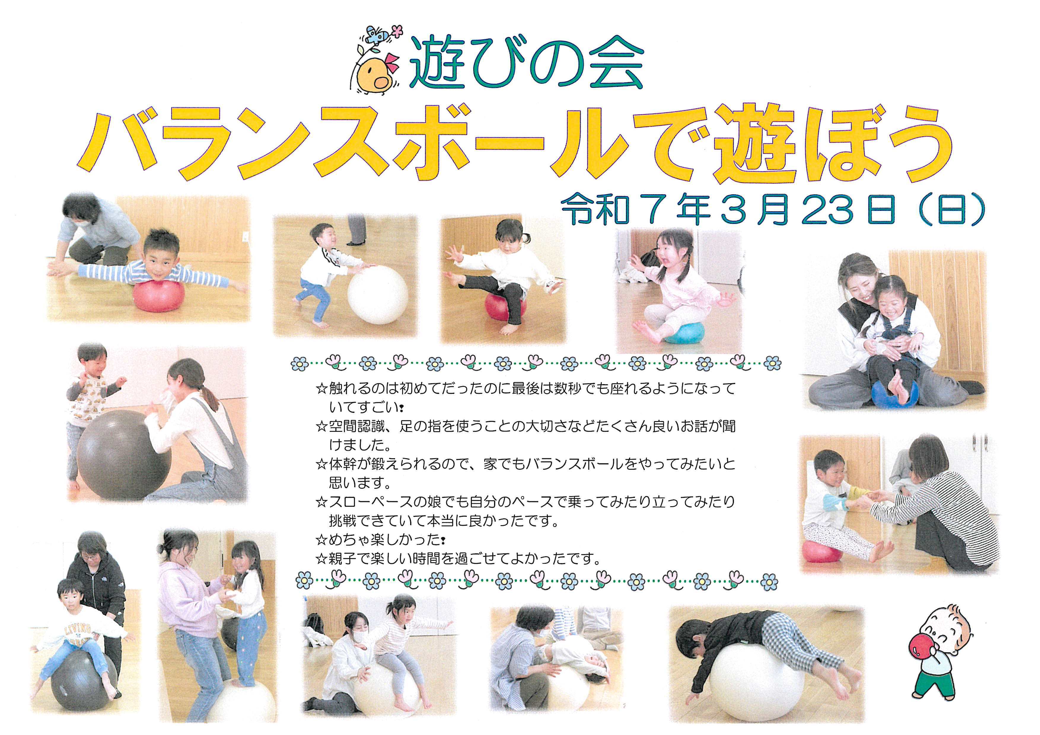▲ 令和7(2025)年3月23日 遊びの会「バランスボールで遊ぼう」