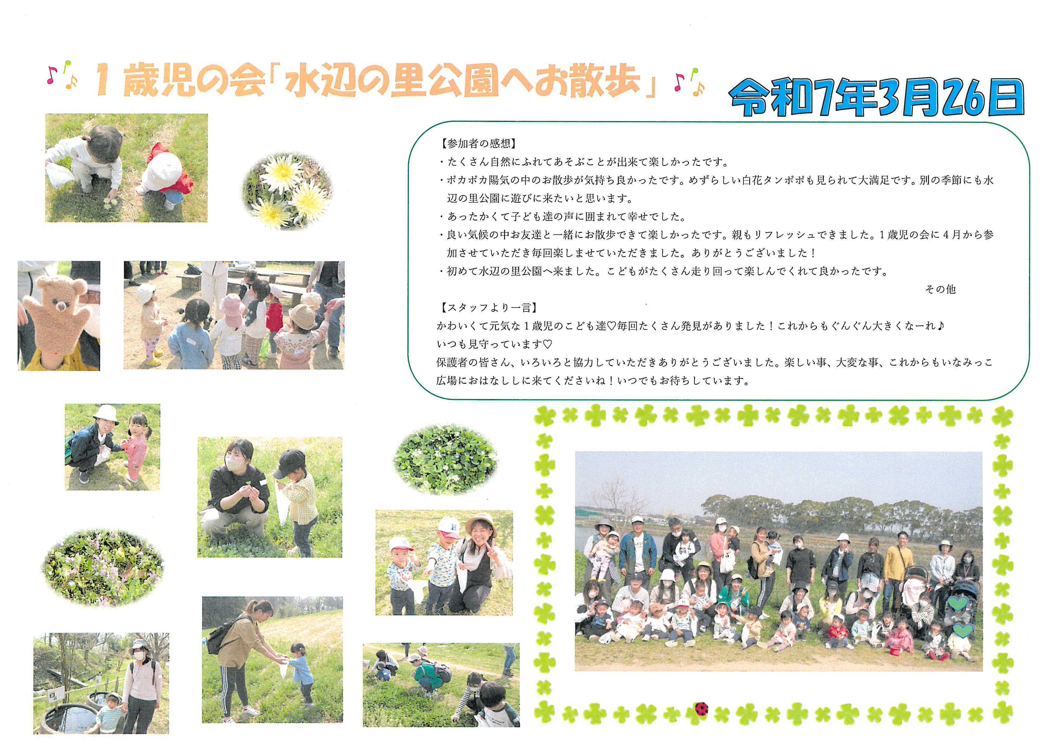 ▲ 令和7(2025)年3月26日 1歳児の会「水辺の里公園へお散歩」