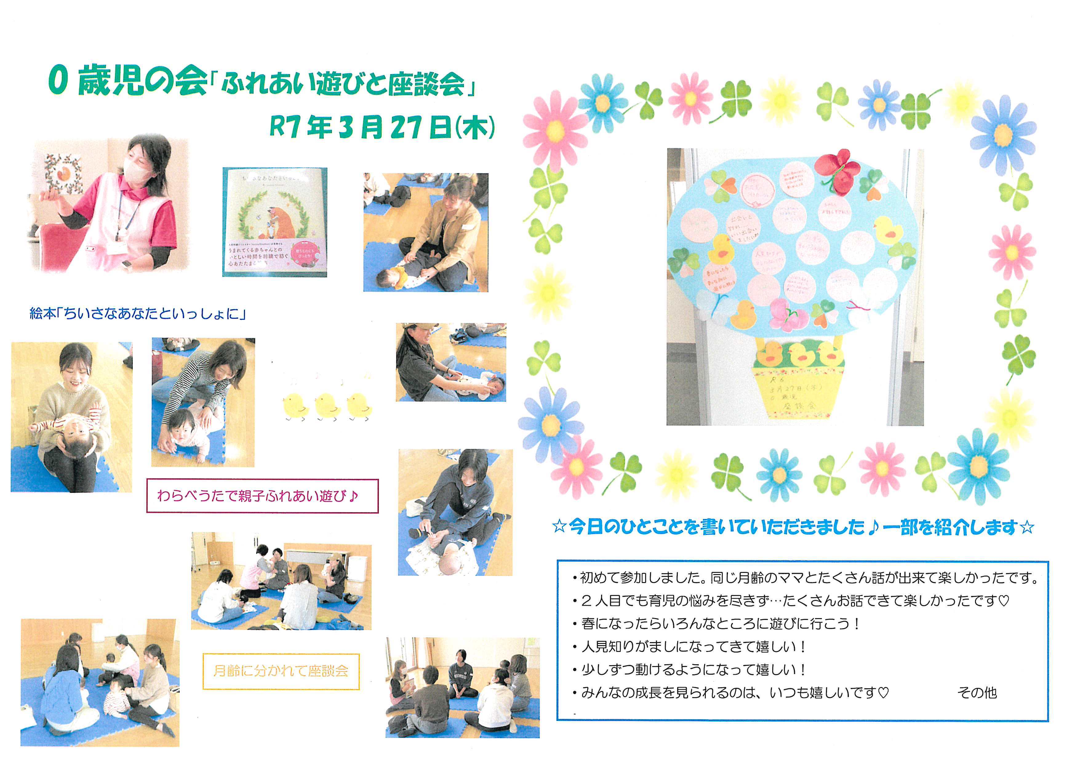 ▲ 令和7(2025)年3月27日 0歳児の会「ふれあい遊びと座談会」