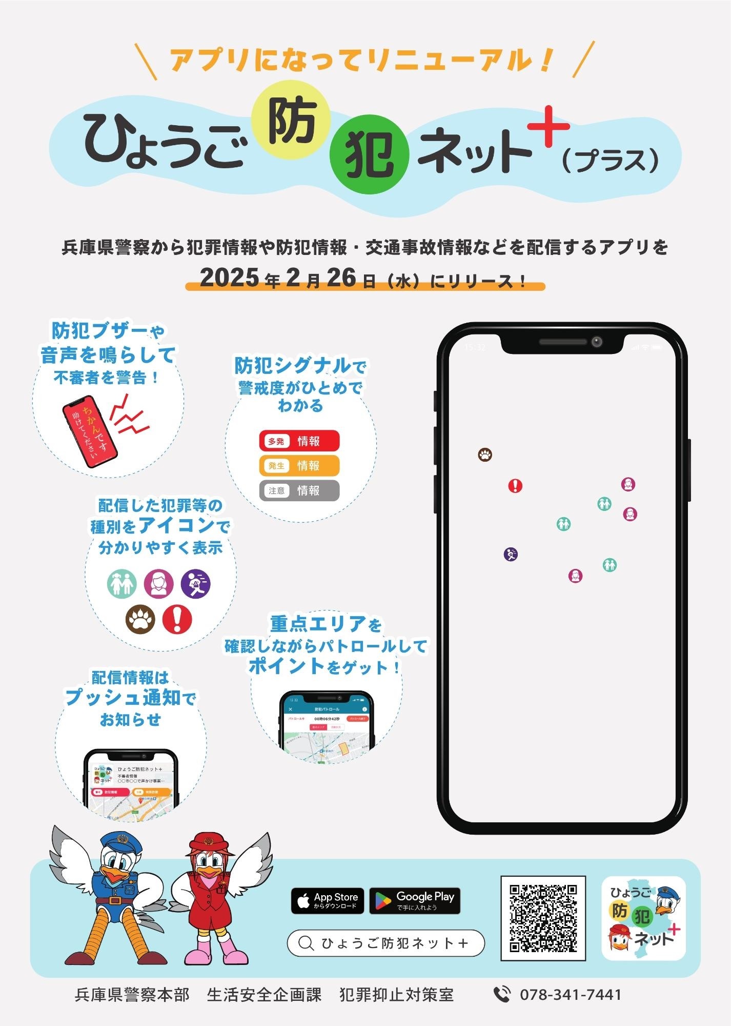 ダウンロードや詳細については、ひょうご防犯ネット+(プラス)(兵庫県警察本部ホームページ)をご覧ください。