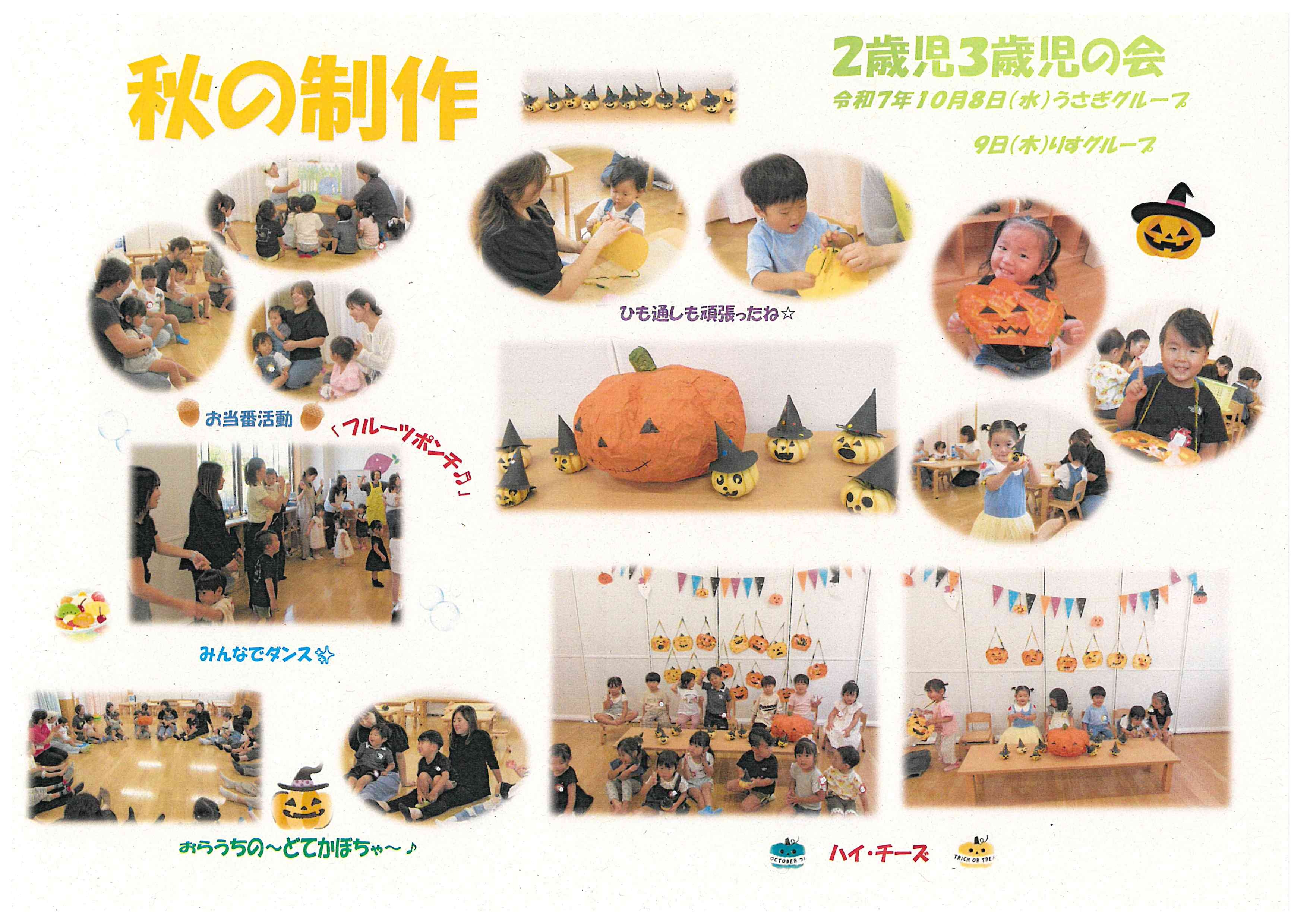 ▲ 令和7(2025)年10月8日.9日 2歳児3歳児の会「秋の制作」