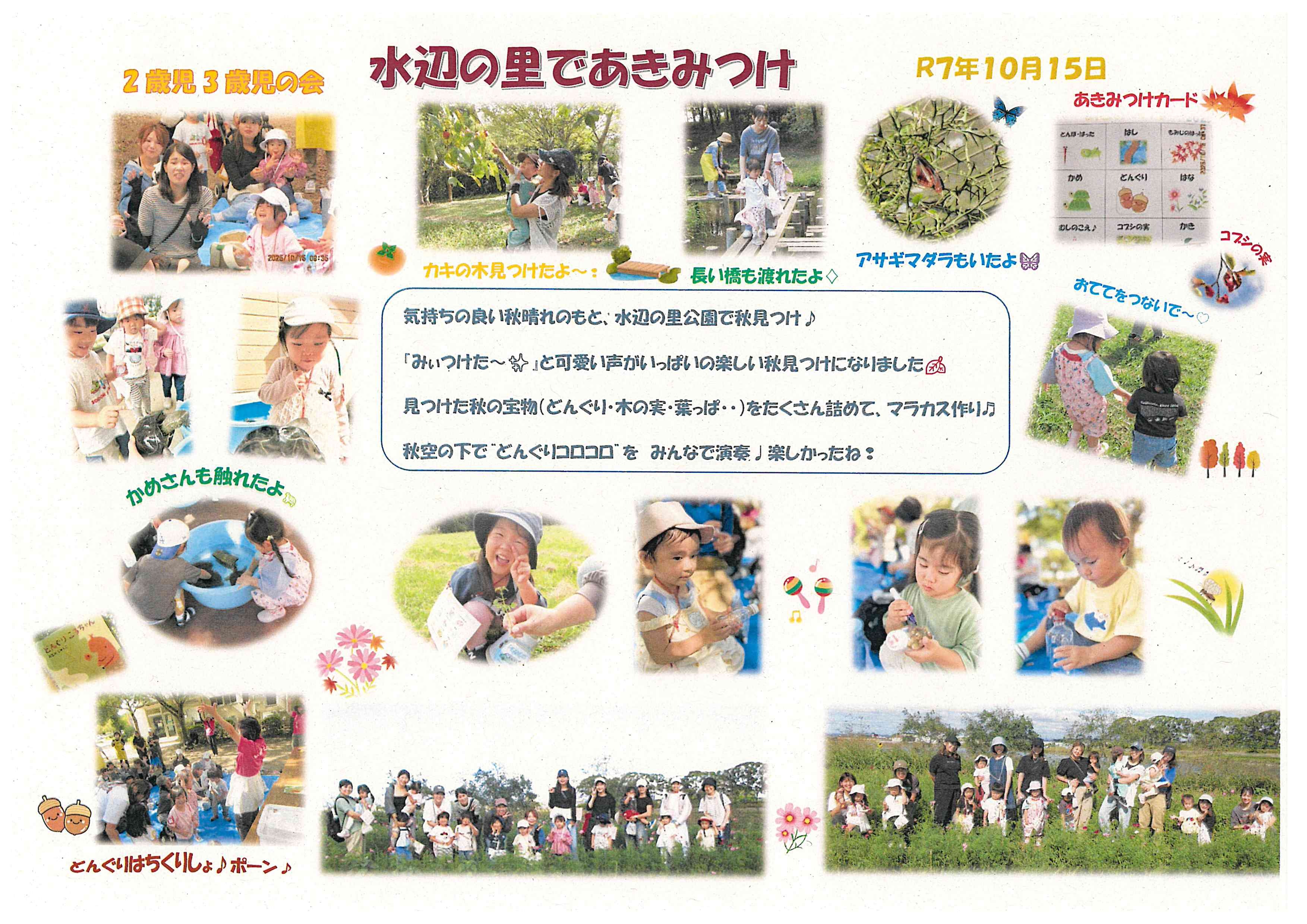 ▲ 令和7(2025)年10月15日 2歳児3歳児の会 「水辺の里公園で秋みつけ」