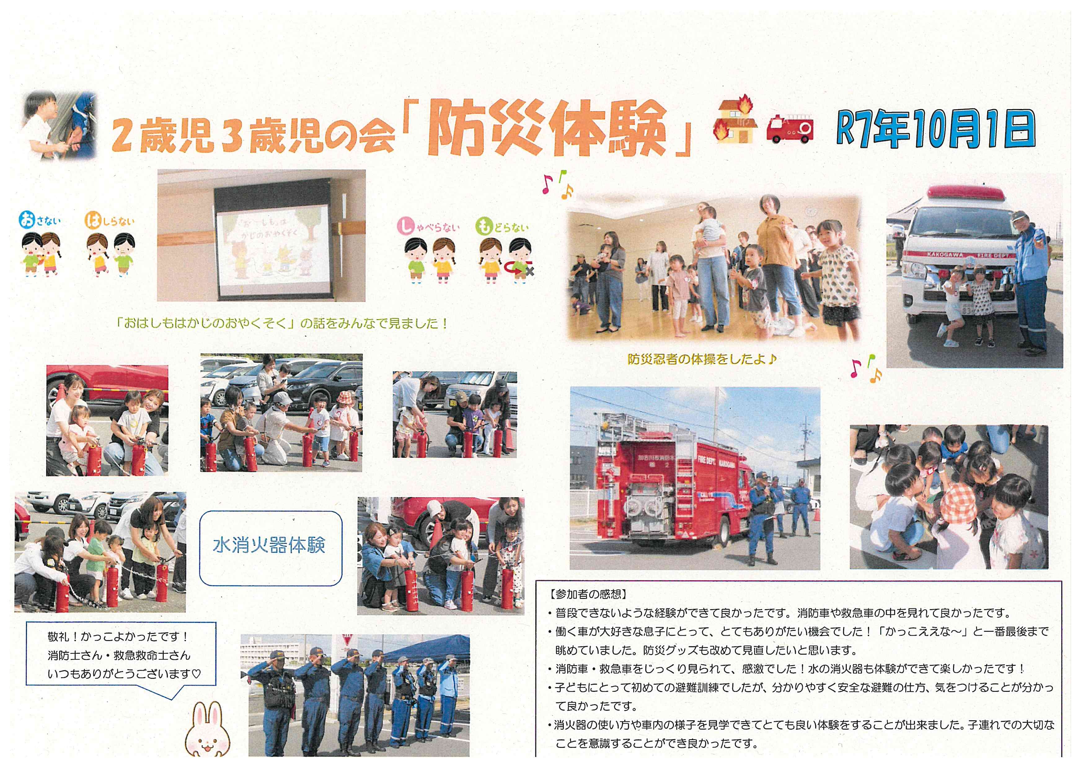 ▲ 令和7(2025)年10月1日 2歳児3歳児の会 「防災体験」