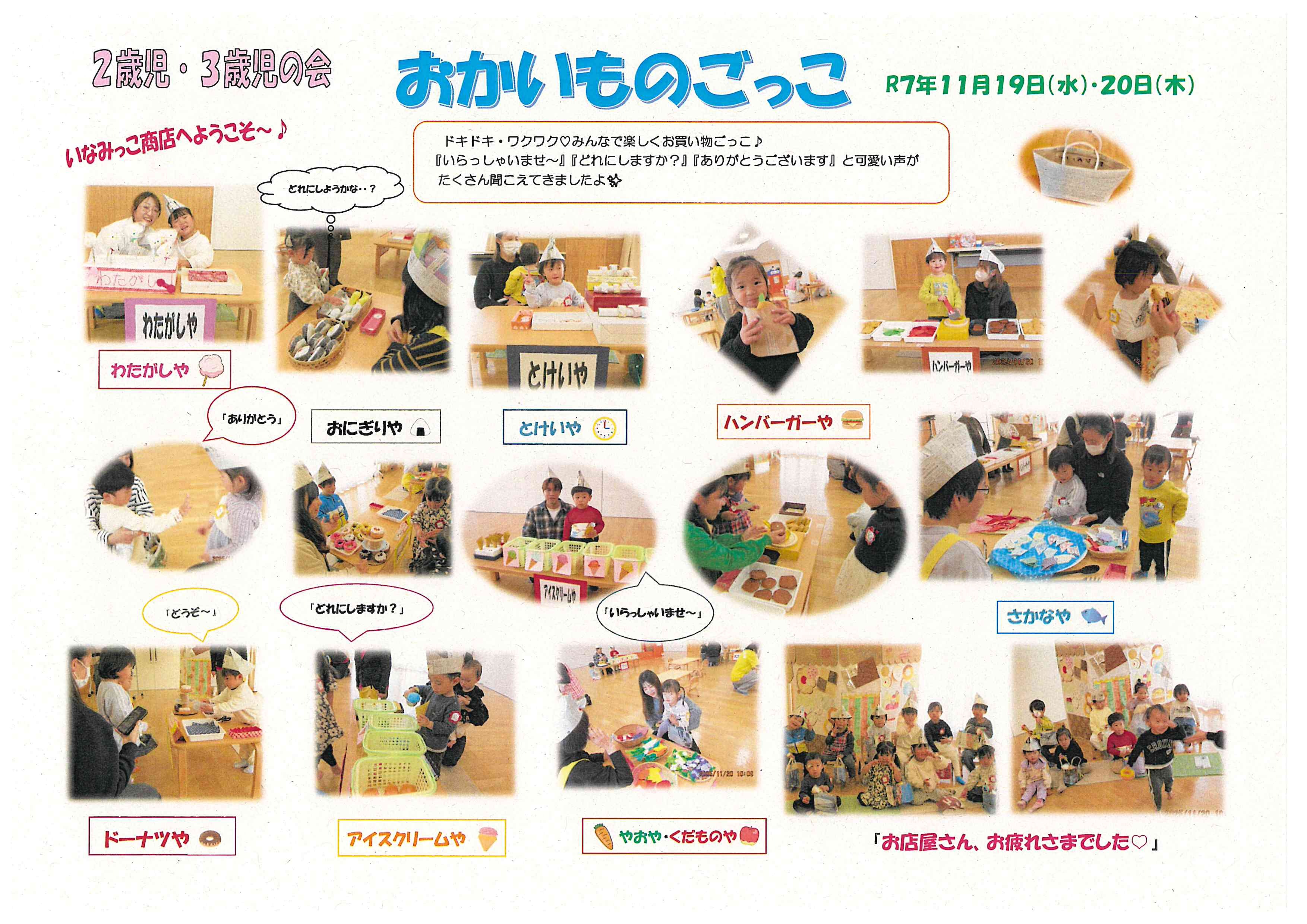 令和7(2025)年11月19日.20日 2歳児3歳児の会「おかいものごっこ」