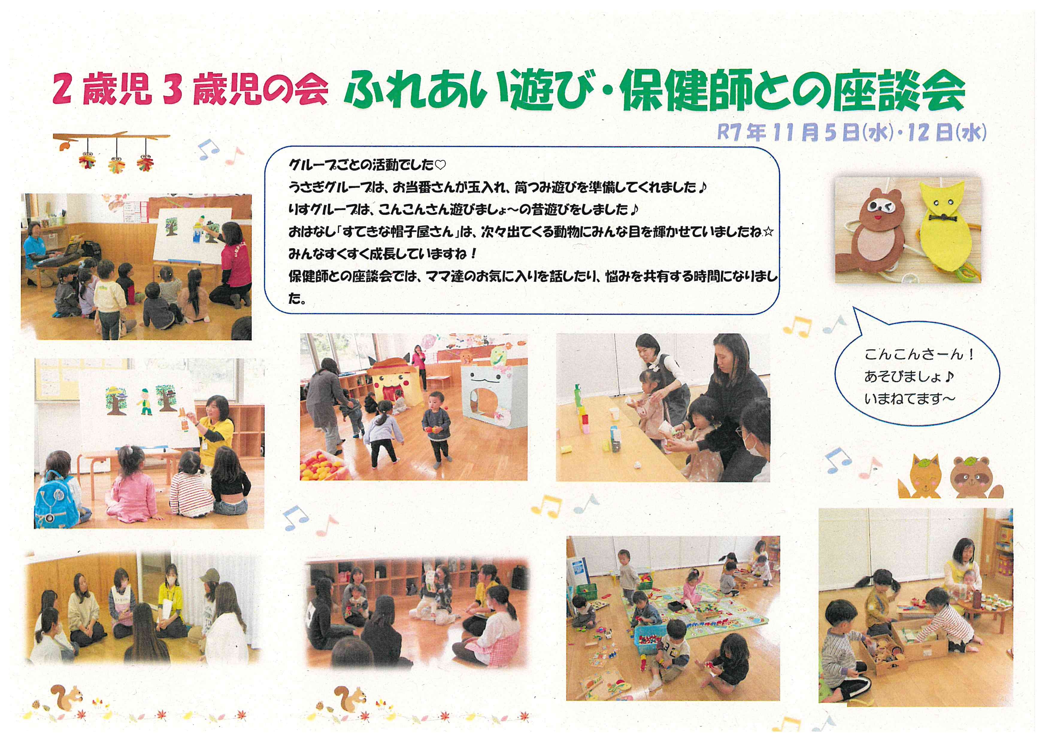 令和7(2025)年11月5日.12日 2歳児3歳児の会「ふれあい遊び・保健師との座談会」