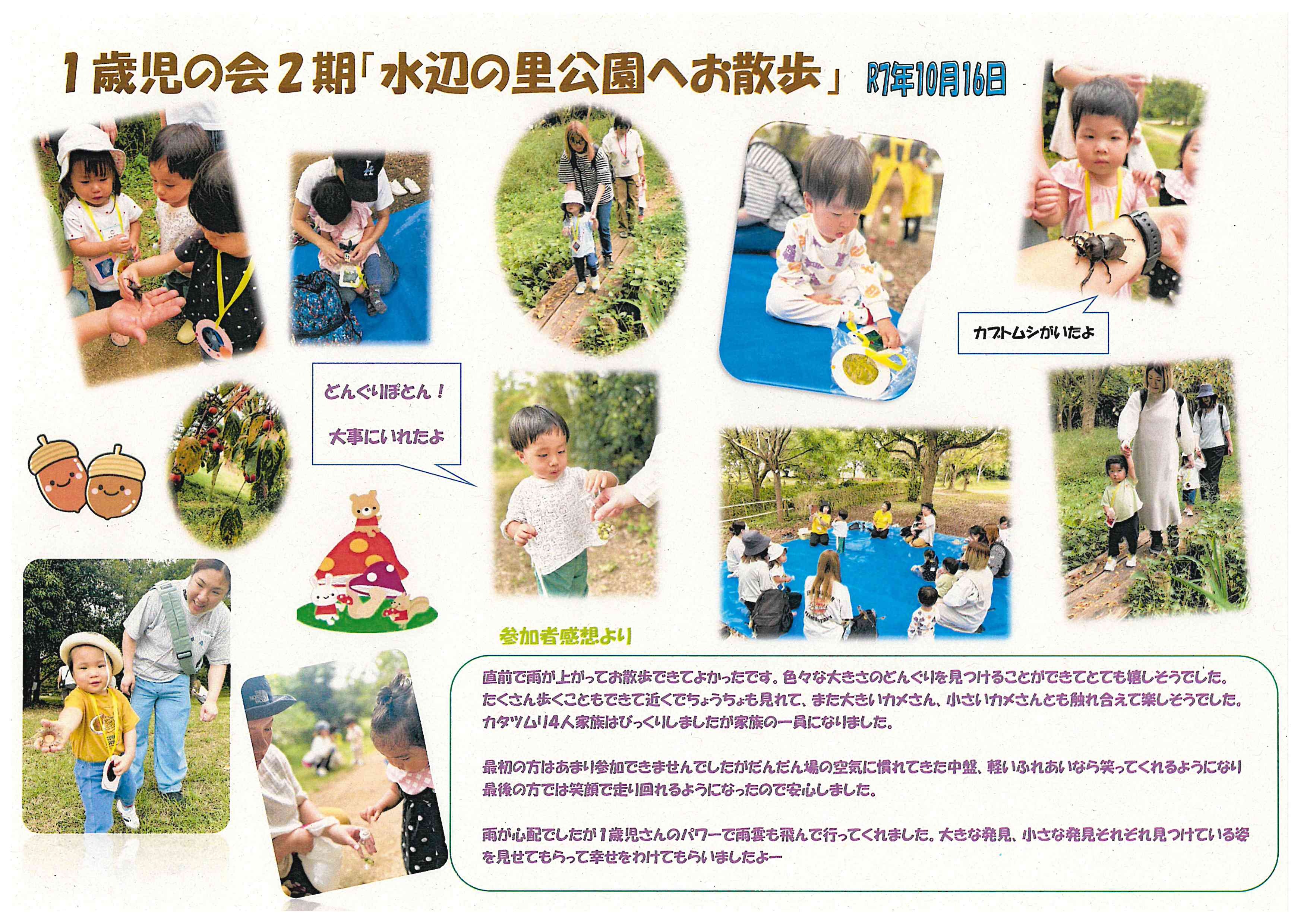 令和7(2025)年10月16日 1歳児の会 2期「水辺の里公園へお散歩」
