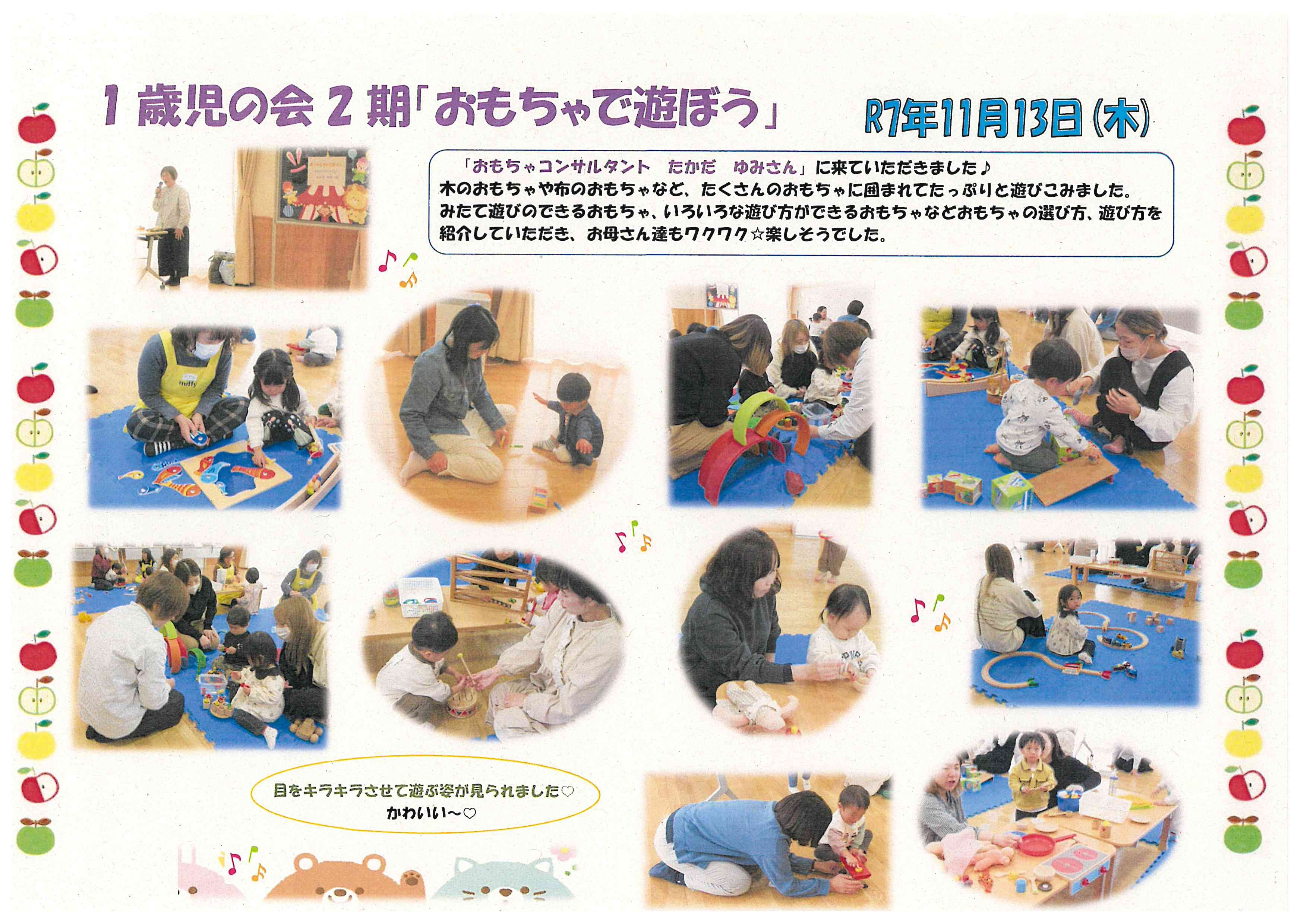 令和7(2025)年11月13日 1歳児の会 2期「おもちゃで遊ぼう」