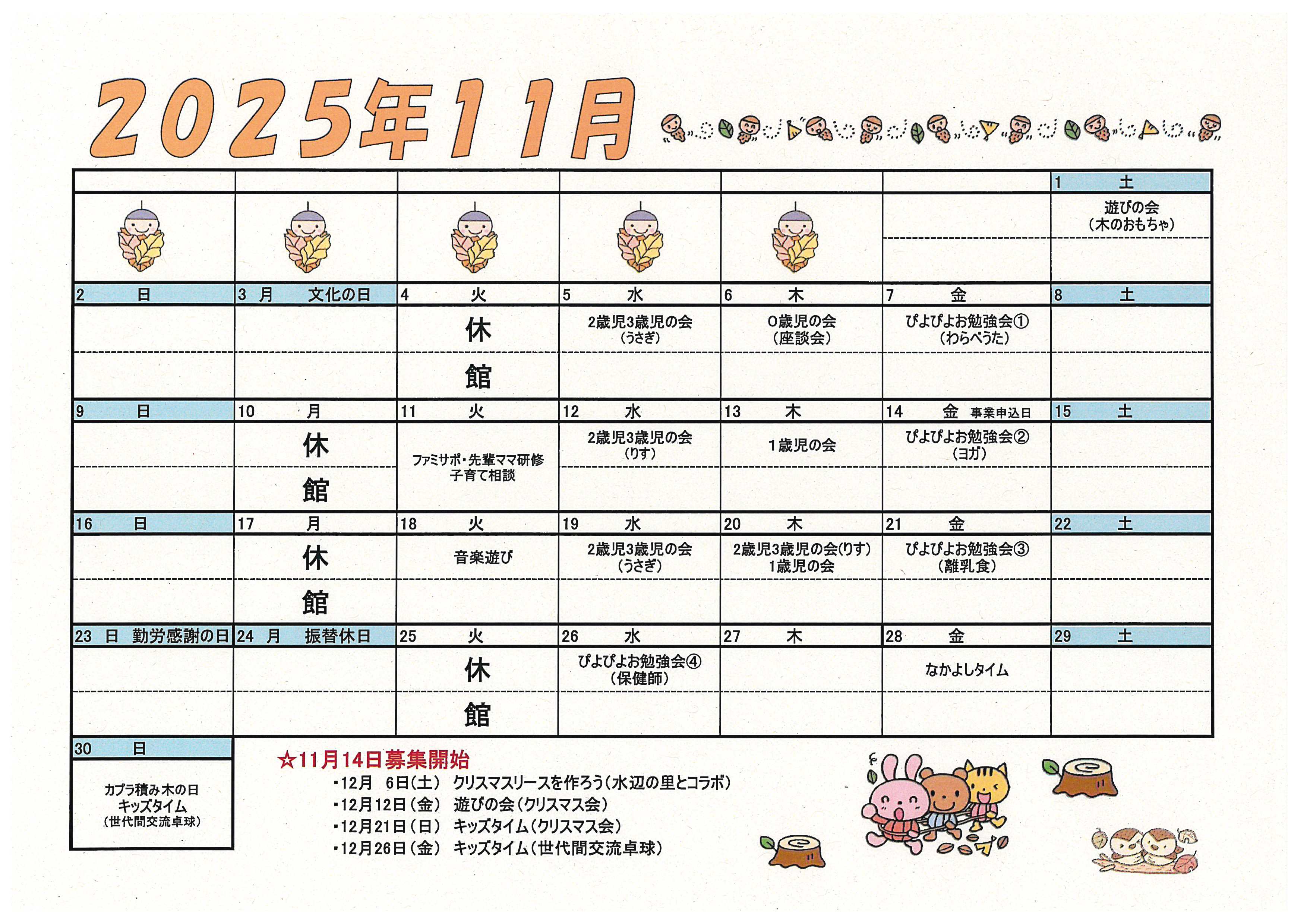 いなみっこ広場 子育て支援エリア 11月開催事業