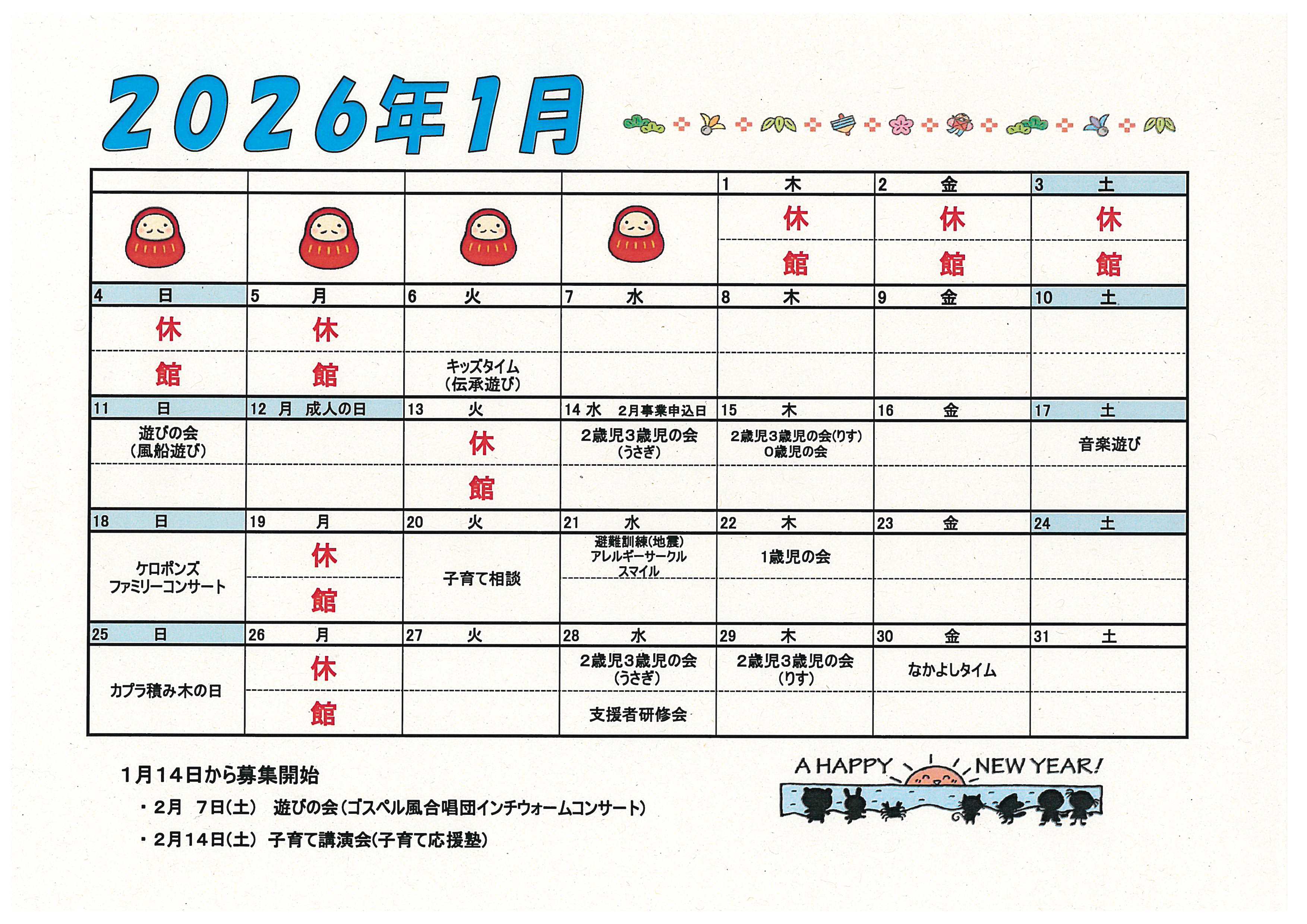 いなみっこ広場 子育て支援エリア 令和8(2026)年1月開催事業