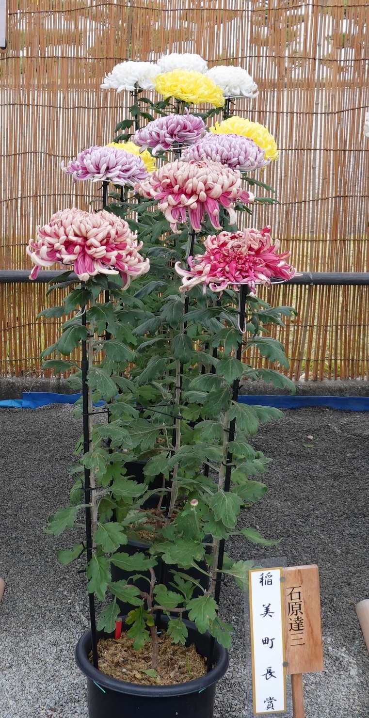 ミニ特作花壇、盆栽花壇、小品盆栽鉢個別、ミニ盆景、岩付け盆栽、大菊組4鉢、だるまづくり、大菊福助作り、懸崖鉢個別、ドーム菊花壇の10部門で、39組の応募がありました。受賞された皆さんおめでとうございます。
