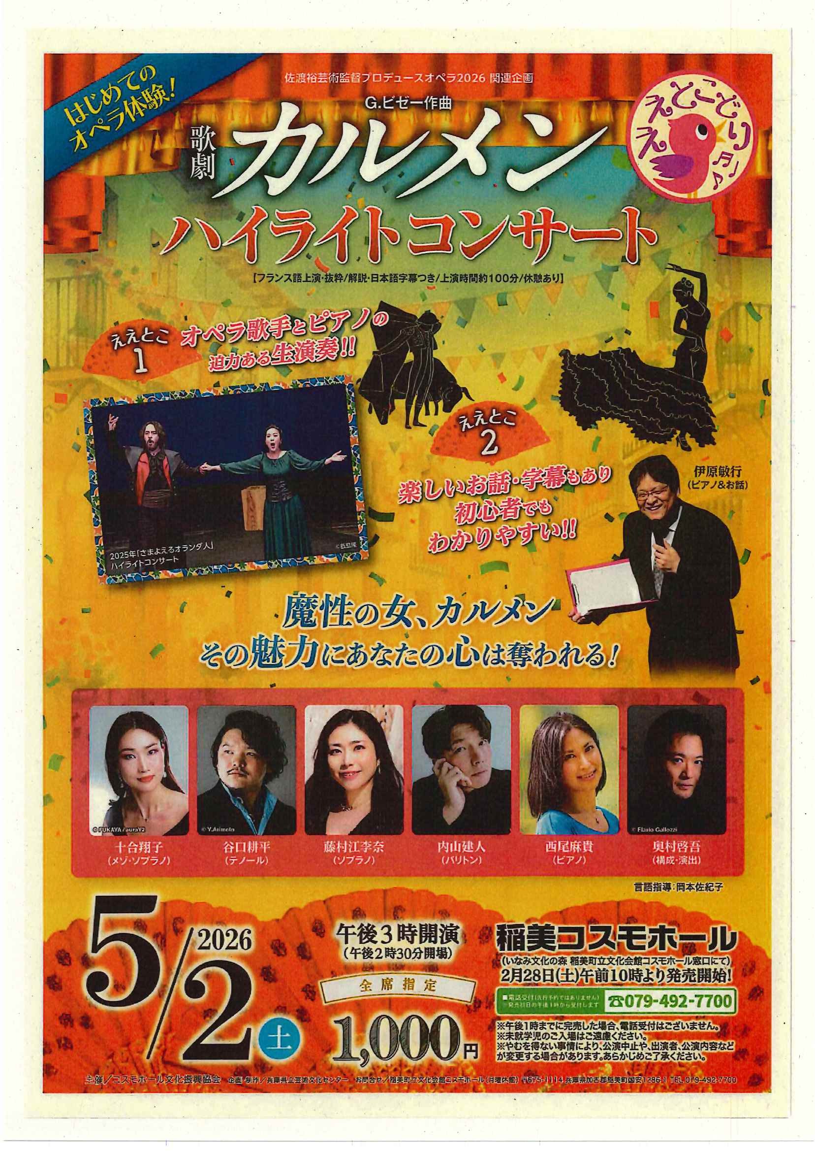 佐渡裕芸術監督プロデュースオペラ2026関連企画G.ビゼー作曲「歌劇カルメンハイライトコンサート」を開催します。皆さんのご来場をお待ちしています。