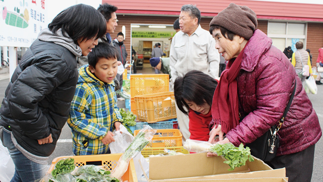 毎週土曜の朝、「ふぁ~みんSHOPいなみ」の駐車場で、野菜や切り花などを農家さんが直接販売。生産者との会話も楽しめます。