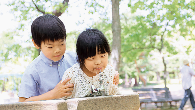 地下150~180mの深さから汲み上げた地下水を主な水源とする水道水は、おいしいと評判。厚生労働省の「おいしい水」の要件も満たしています。