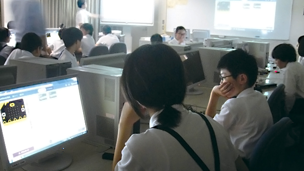 町立の幼稚園、小中学校ではエアコンを設置しています。また、小中学校で学習用PCとしてタブレット端末等を導入し、それを使った授業を行うなど、ICT化に向けた環境整備にも力を入れています。