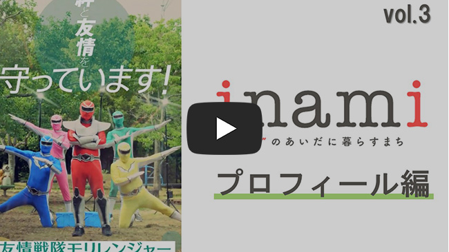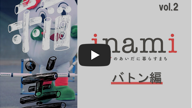 inamiの 「i」 の文字が、ボール(丸)やバトン(棒)になり、inamiソングにのせて、稲美町をかけめぐります。