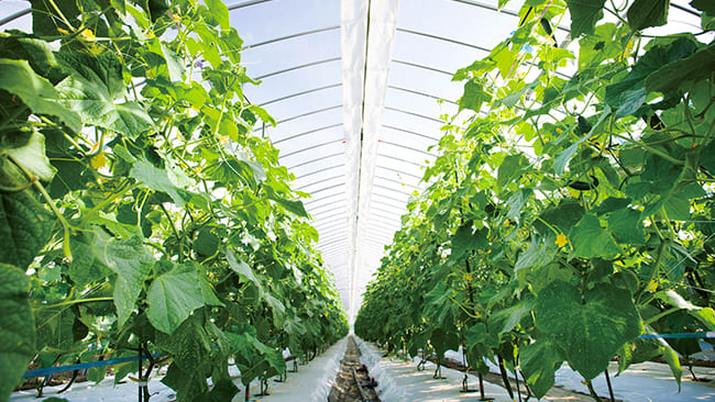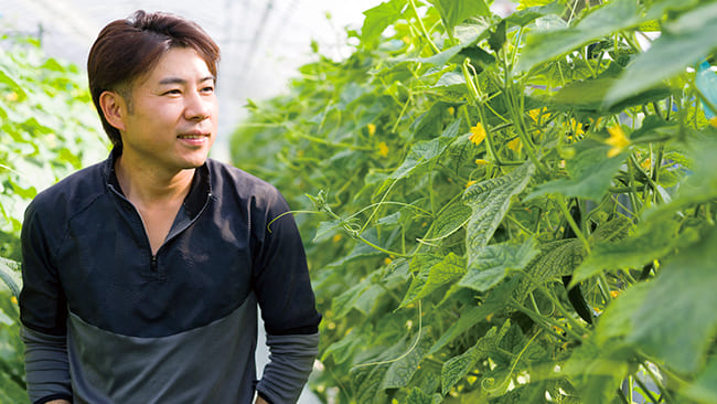 「キュウリの美味しさって、時間との戦いなんです」。5年前、就農を目的に千葉県から稲美町に移住し、この地でキュウリをメインに作り続けている飯塚さんは、言葉に力を込めます。収穫後、時間とともに美味しさのもとである水分が蒸発し失われていくため、穫ってからどれだけスピーディーに食卓まで届くかが、そのまま味の違いになるのだとか。その点、町内にある2つの直売所“ふぁ〜みんSHOPいなみ” “にじいろふぁ〜みん”や、スーパーに設けられた直売コーナーの店頭には、生産者が直接搬入するため、収穫から最短で商品が並ぶそうです。